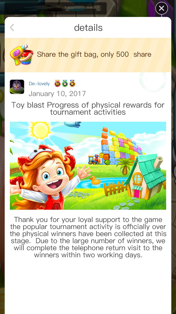 Toy BlastRelaxation Mobile Game, Match 3 GameToy Blast, a high quality Match 3 game, has been recommended by Appstore for many times. After the game accessed WePlayKit, players get a user community where users are able to exchange the game tips and share their lives. Also, users have given a lot of feedback and suggestions to the game through the community, which makes the updates of Toy blast more fit. -