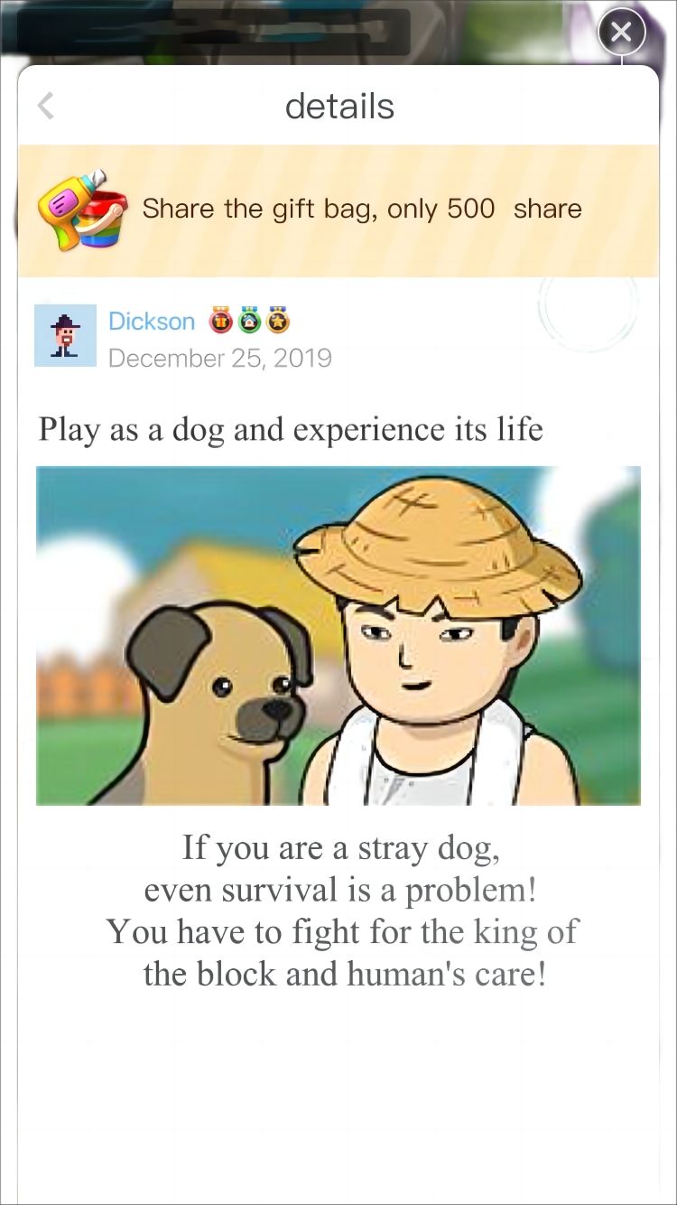 King Of The BlockMobile GameIn this game, you will play as a dog and experience its life! You could be a stray. If you are a stray dog, even survival is a problem! You have to join the fight to become the dog king of the block! For humans? He'll be your long-term meal ticket. There are many strange dogs here, come and experience it.